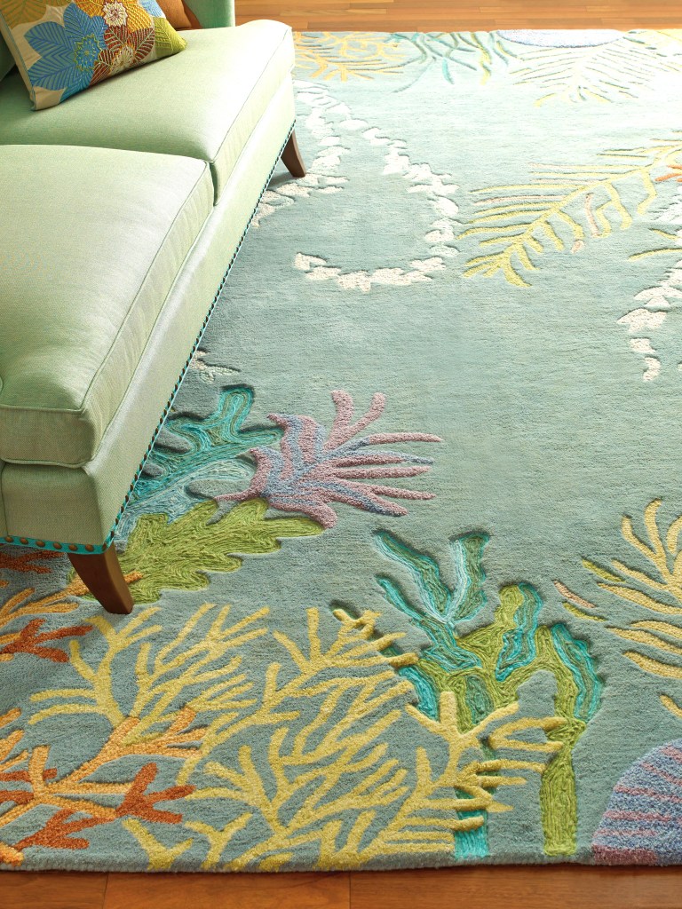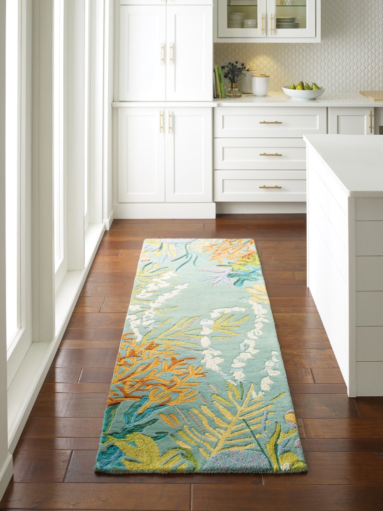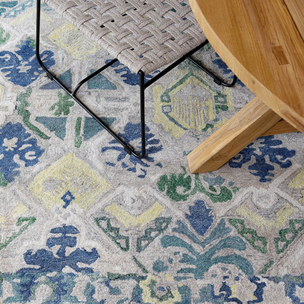 Abstract motifs in aquatic colors fill our Cayo rug with a whimsical coastal feel. The performance yarns are perfect for high traffic areas.