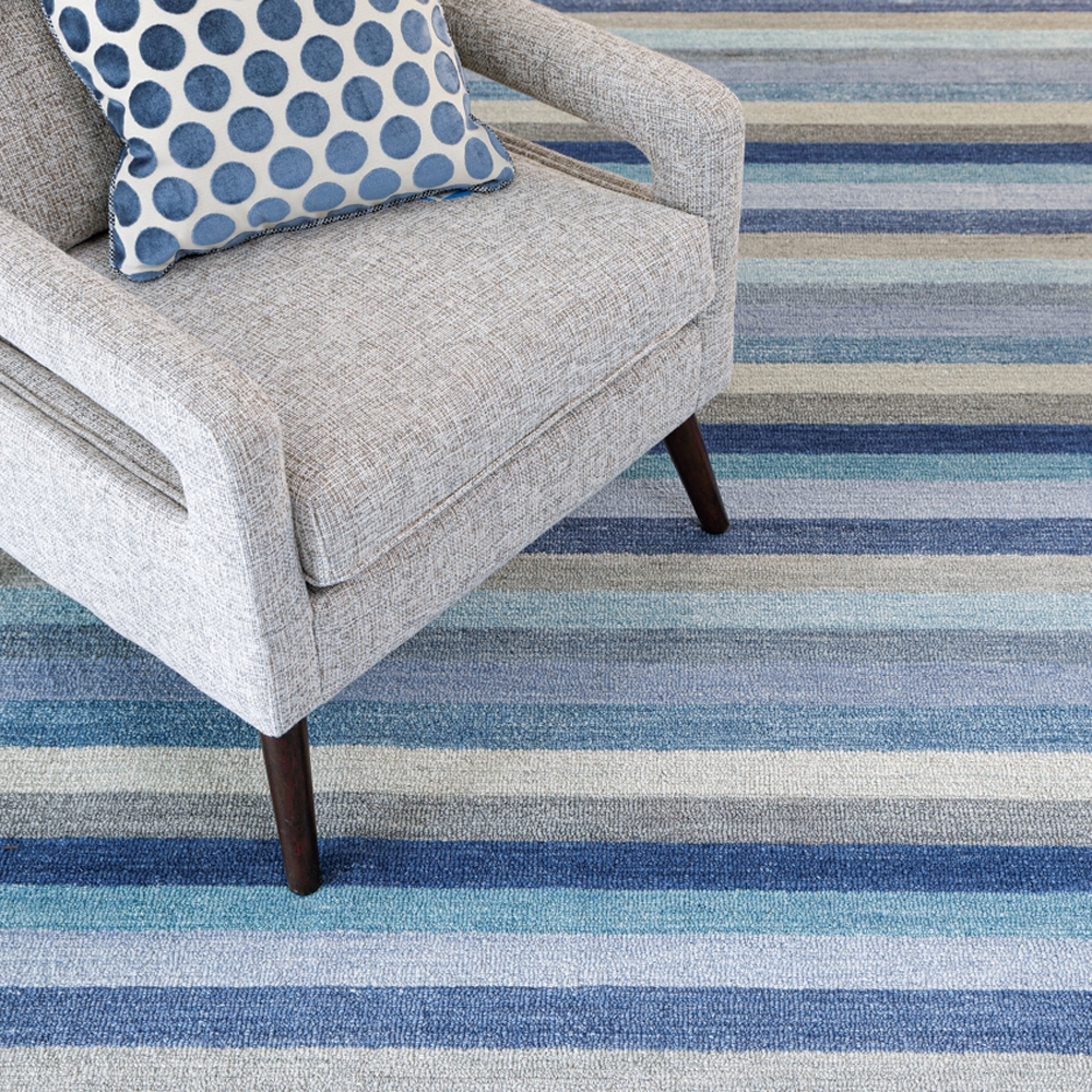 This colorful stripe creates lively rhythm for your interiors. Each color is specially-dyed to add subtle variations across each row, while the loop pile is perfect for high traffic areas.