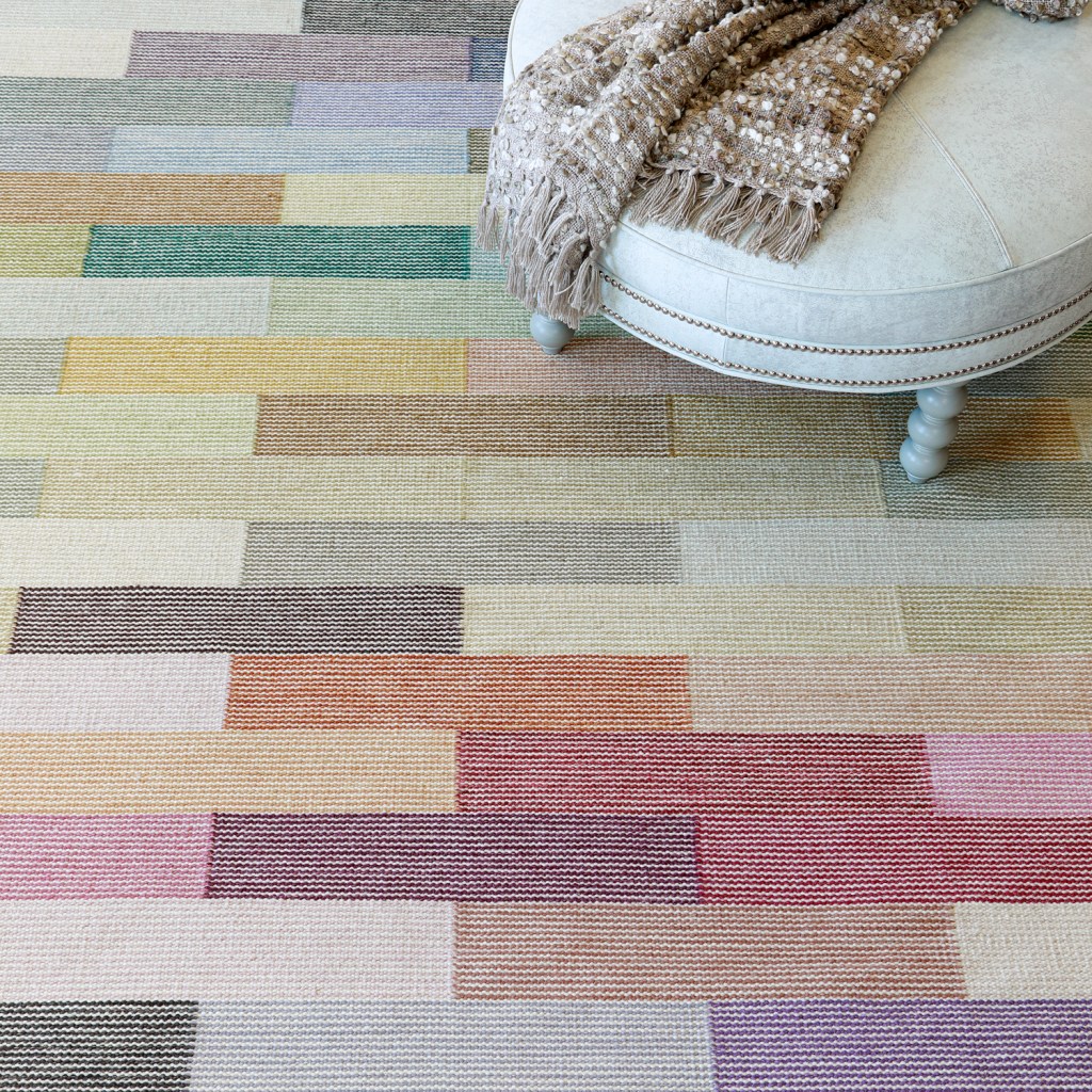 Our ever-popular Landscape or Soledad rugs in warmer bright tones pair boldly with Brushstroke and Gemstones multis.
