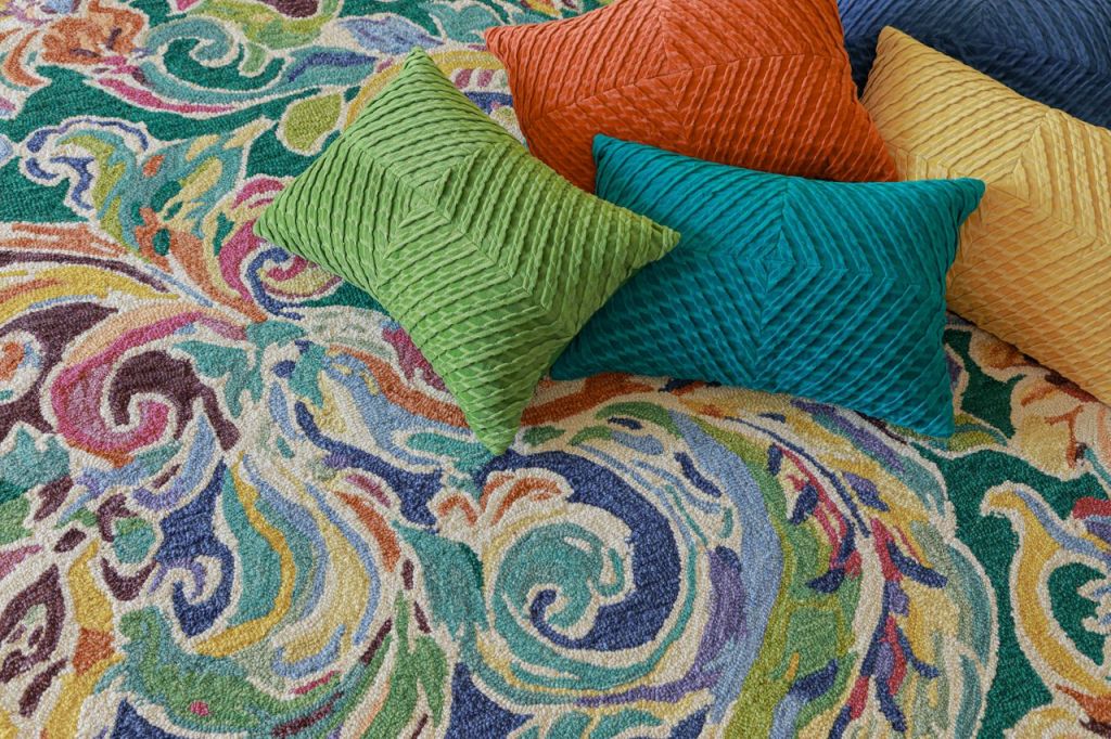 Don’t shy away from pattern play! Sometimes, a space might need matching rugs or a neutral supporting rug, but not always. In fact, by working within a color story and balancing patterns, you can create more design depth in a space. How do you do that? Consider the focal point rug—is it a swirl of pattern or organic shape? Try balancing it with a stripe. Is a third rug needed that will visually flow through the space? Perhaps add a small geometric pattern. Try mixing in something with a texture to help create more visual interest.