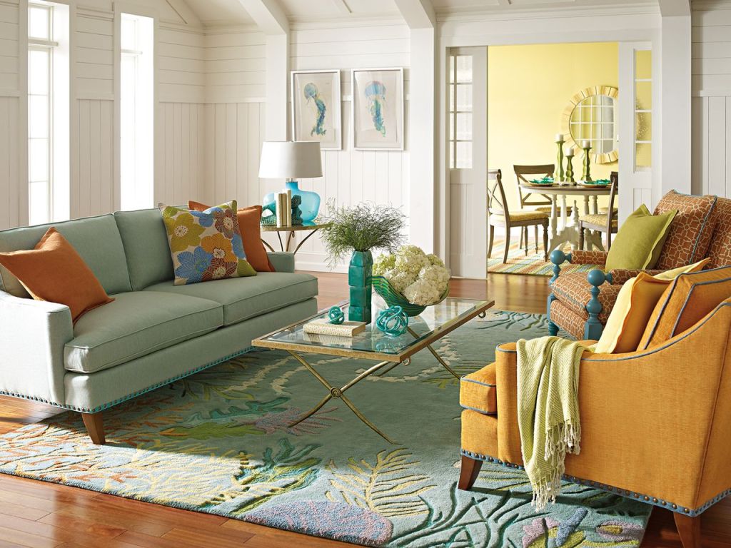 Bold patterns may seem bright at first, but will surprise you with how easily they fall away once furnishings and accessories are placed in the room. Patterns like these are the heroes of busy family rooms as they can help camouflage everyday life while never losing their style.