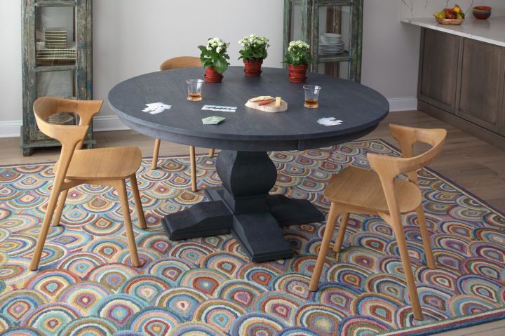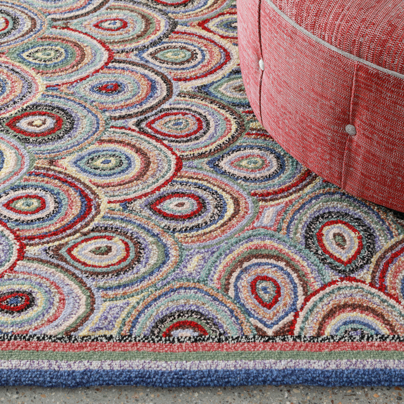 We fell in love with hooked rugs from the very beginning and they continue to inspire us. Our Rainbows rug is no exception. For this updated design we used a broad palette of specially-dyed, thick wool yarns to create create a contemporary play on a vintage feel, ready to complement any color scheme.