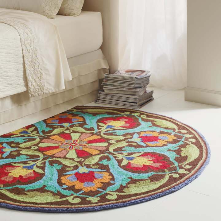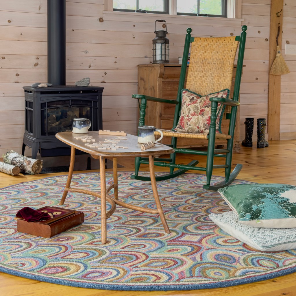 A round rug works well for a small game or reading nook by a cozy fire.